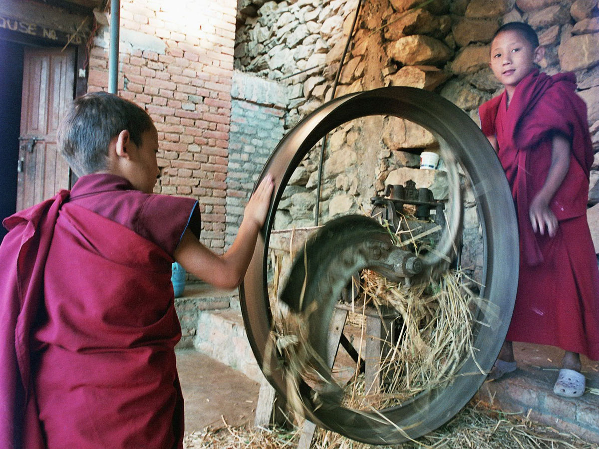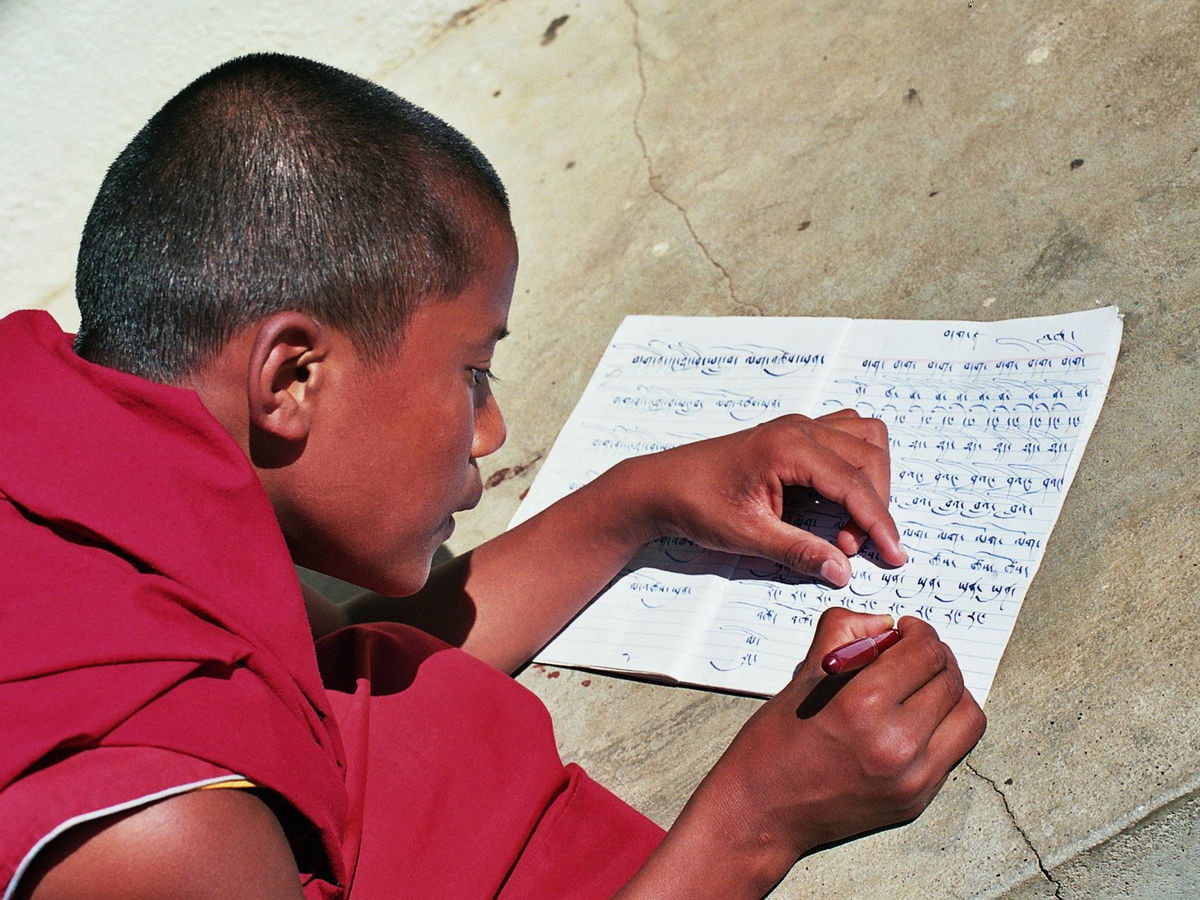 Die Schule wurde zum Gedenken an unser Stiftungsmitglied Dukar Tsering Kaiser 1995 gegründet. Unter der Führung von Dhubthob Rinpoche (1929-2013) wurde das Manjushri Di-Chen Buddhist Learning Center 1996 eingeweiht. Es liegt südlich von Kathmandu, in Pharbing einem Pilgerdorf nahe des Tara Tempels. Die Schule nimmt bis zu 50 Schüler im Alter von 6-20 Jahre auf. Die Schüler werden in buddhistische Philosophie, Kalligraphie, Dialektik, Mathematik, Sprachen und moderne Wissenschaften eingeführt. Daneben sind sie im angegliederten kleinen Biobetrieb tätig, da die meisten Schüler nach Abschluss wieder in ihre Heimatdörfer zurückkehren und angewiesen sind auf eine praktische Ausbildung. Heute sind es meist Kinder aus armen Familien, die in der Grenzregion Nepals zu Tibet leben und keinen Zugang zu Schulen erhalten.